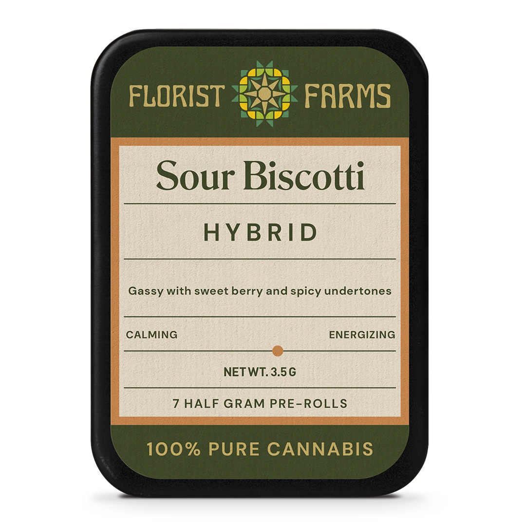 Choose Florist Farms’ Sour Biscotti strain pre-rolls for a premium, convenient, and truly satisfying cannabis experience. Add this 7-pack to your collection today!
